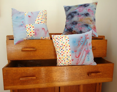 i now want to try and do this on a more absorbent fabric to see what patterns and effects i can achieve, but if you follow my blog you know this might take some time to materialize.. the big pillow with the full front cover is my favorite and id like to keep it, but its for sale in my shop now...